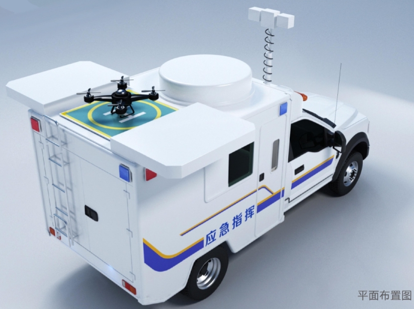 選用FORD F550型4*4車頭,搭配高集成化、智能化通訊指揮系統,配有無人機啟停裝置,可實現無人機一鍵起飛及返航,實現全自動化高空拍攝及監控。